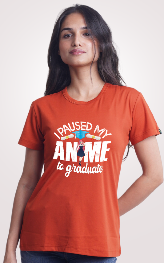 I Paused My Anime For Graduate Orange Printed Half Sleeve T-Shirt
