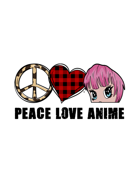 Peace Love Anime White Printed Half Sleeve T-Shirt