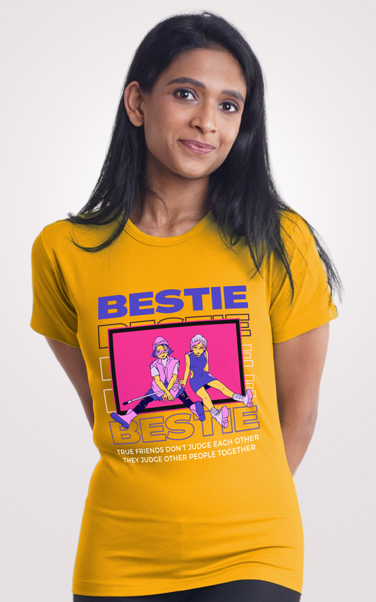 Bestie Mustard Yellow Printed Half Sleeve T-Shirts