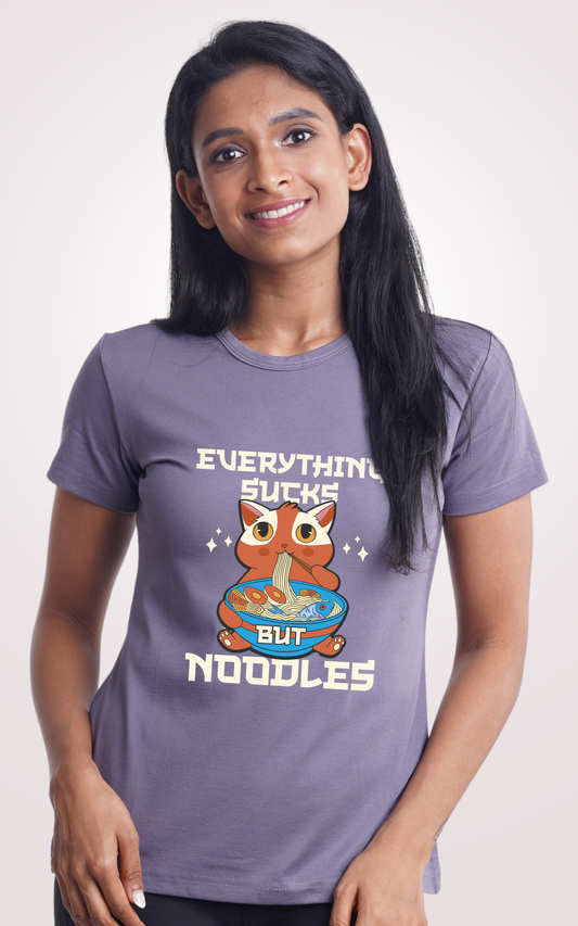 Everything Sucks But Noodles Printed Half Sleeve T-Shirts